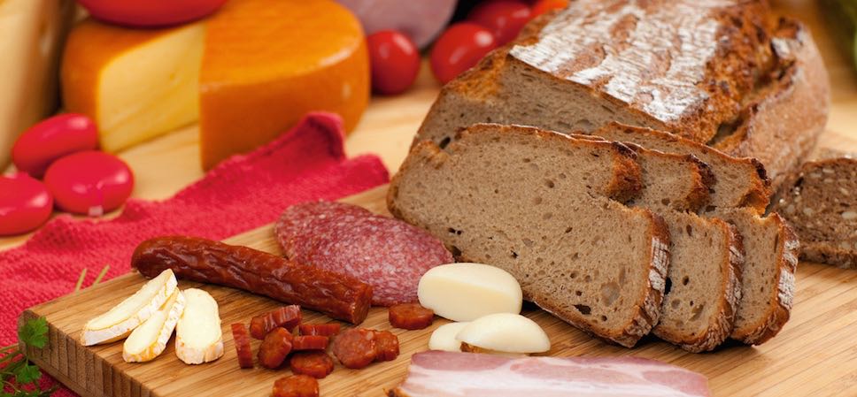 bread, sausgae, bacon and cheese detail